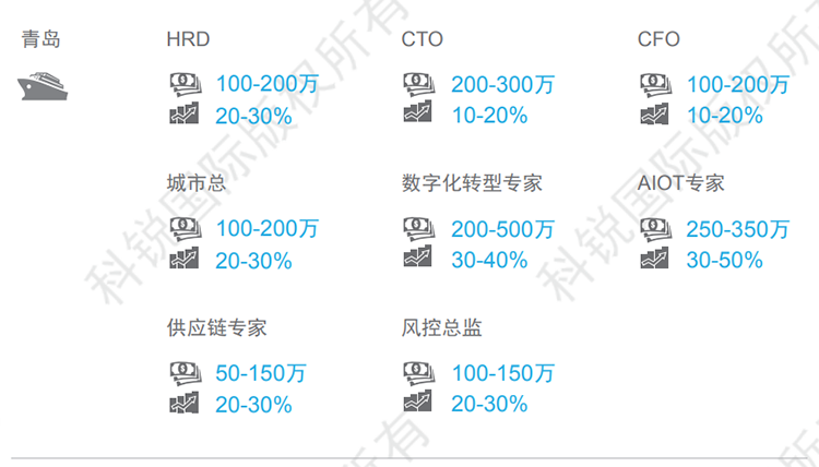 以下是猎头公司科锐国际的薪酬报告对青岛地区的人才招聘需求和薪酬趋势的分析预测,供企业和猎头招聘参考。